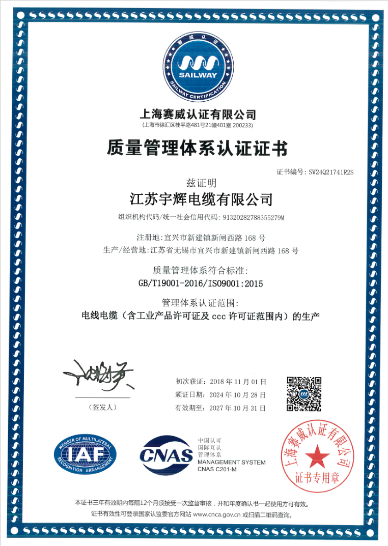 的高科技企业。公司专业生产35kV及以下电力电缆、控制电缆、架空绝缘电缆、防火电缆、铝合金电缆、光伏电缆、储能电缆、计算机电缆等各种塑料电线,产品均按照国家或国际先进标准生产。公司先后取得了生产许可证、3C、ISO9001、ISO14001、ISO45001、消防产品等产品认证。